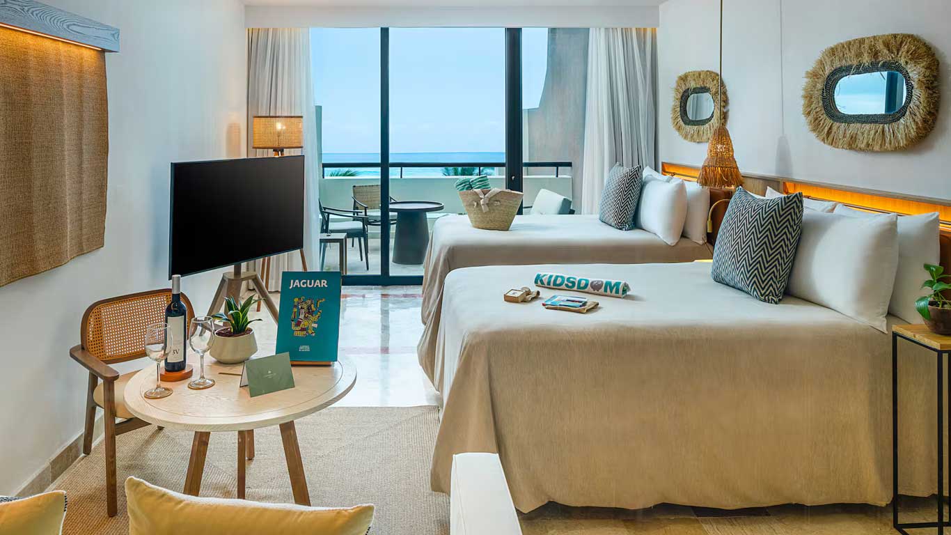 The Family Concierge Ocean View Junior Suite at Paradisus Cancun comes with all the Family Concierge benefits. Experiences that will make your stay unique and exclusive. With wonderful views of the Caribbean Sea, it comprises a bedroom, a sofa and a private terrace.