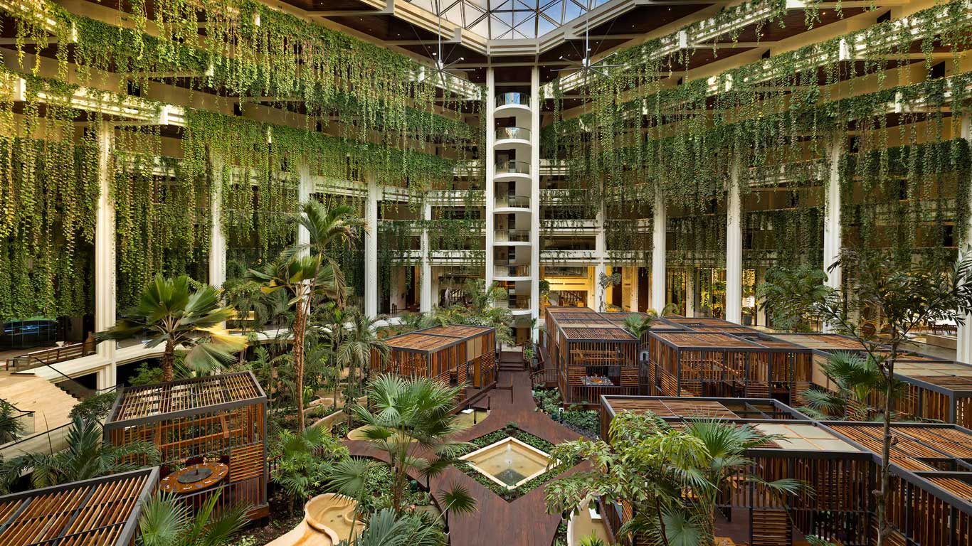 Malva Food Bazaar delivers a wide range of dining options, including a bakery with fresh-baked bread every morning, and a specialty smoothie and juice bar. For lunch and dinner, select from world-cuisine stations that serve up salads, meat, fish, and vegetarian and vegan options. Communal tables throughout connect the 19,353 sq. ft. (5,899 m2) space, offering an easy path to food stations within the Market.